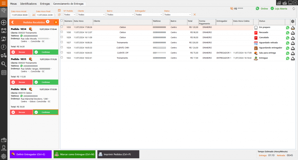 tele-entrega, organizando o fluxo da produção a entrega ou retirada.